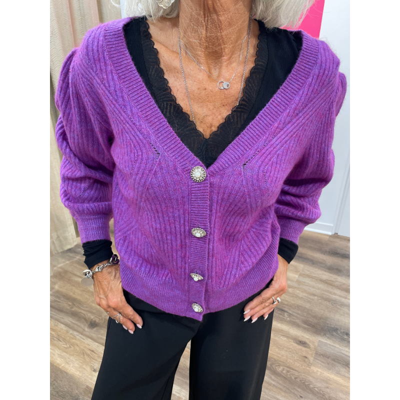 Pull Pollen violet réversible avec boutons fantaisie Suncoo.