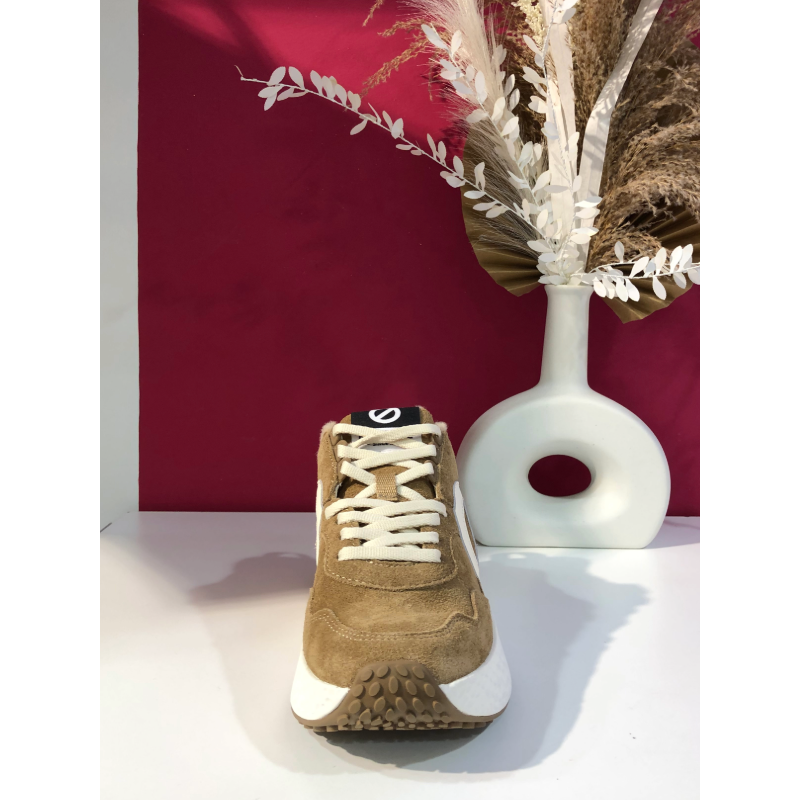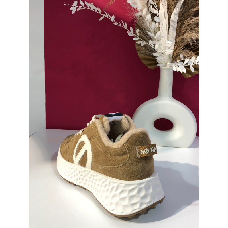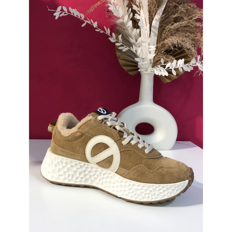 Basket fourée Carter Jogger No Name à semelle épaisse couleur noisette et blanc cassé.